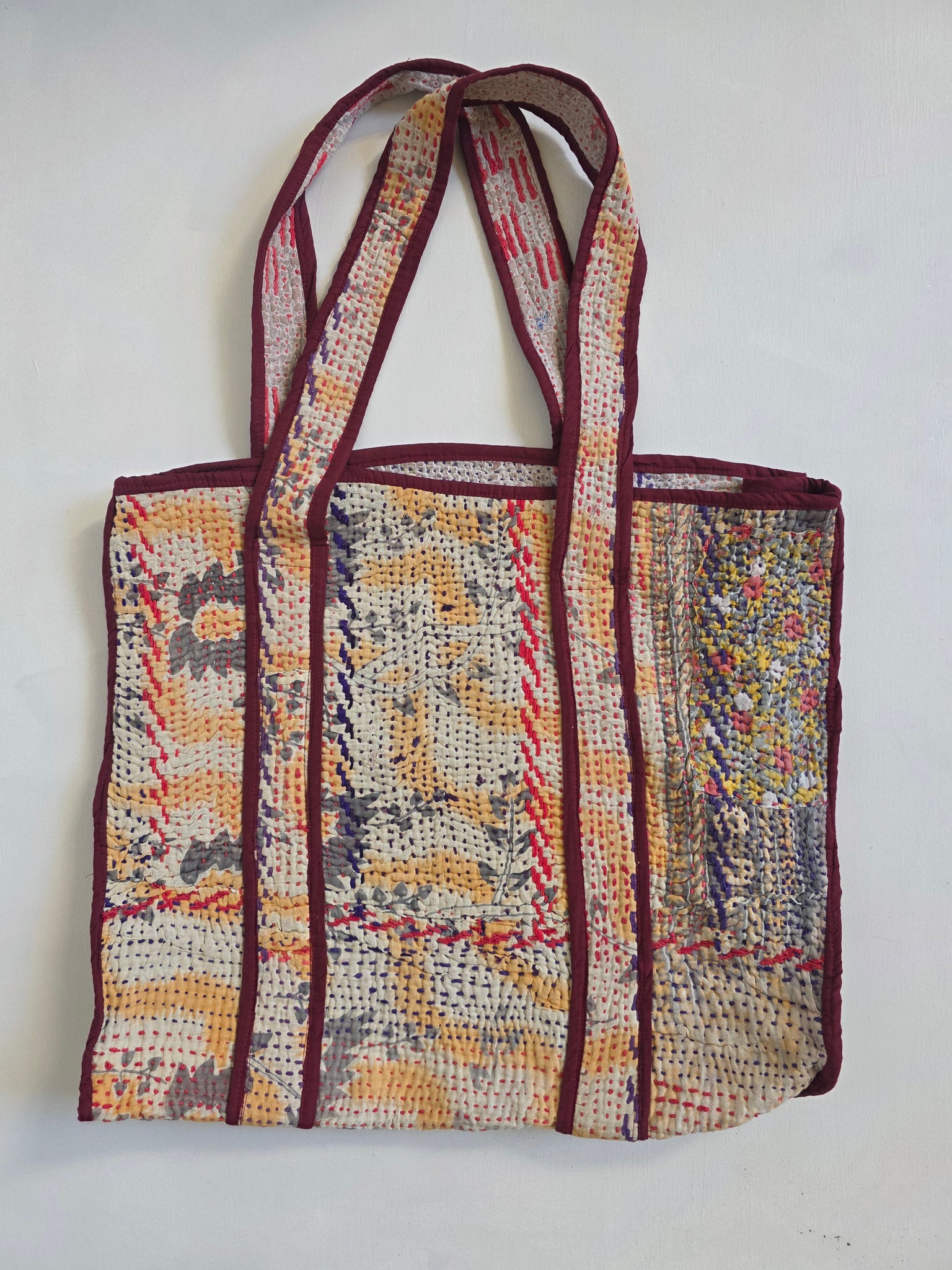 Your everyday reusable tote never looked so good! Each tote bag is made from upcycled kantha - featuring shoulder straps that wrap fully under the tote for better support. Perfect for carrying every day essentials, and using in lieu of single use bags at checkout.
