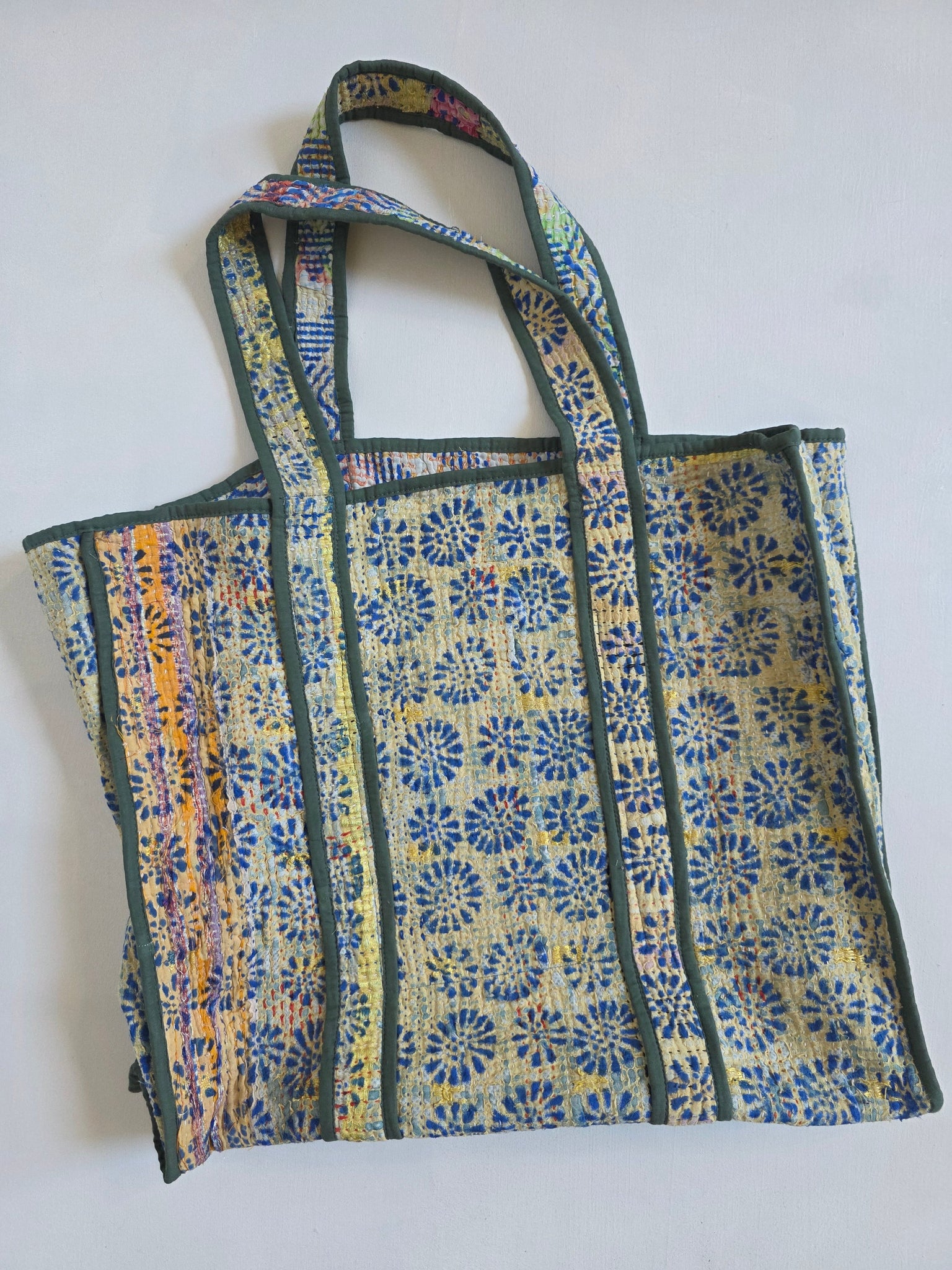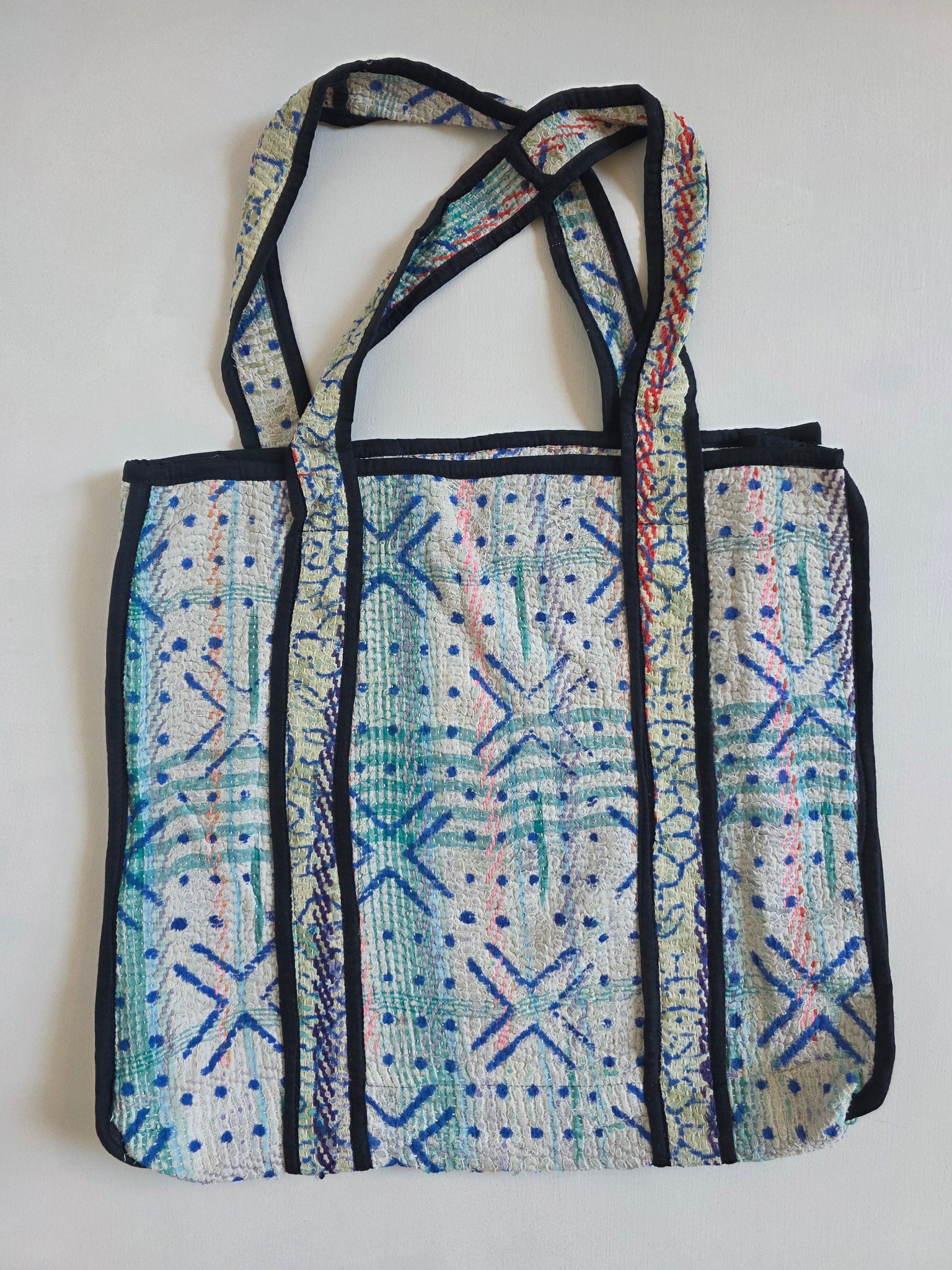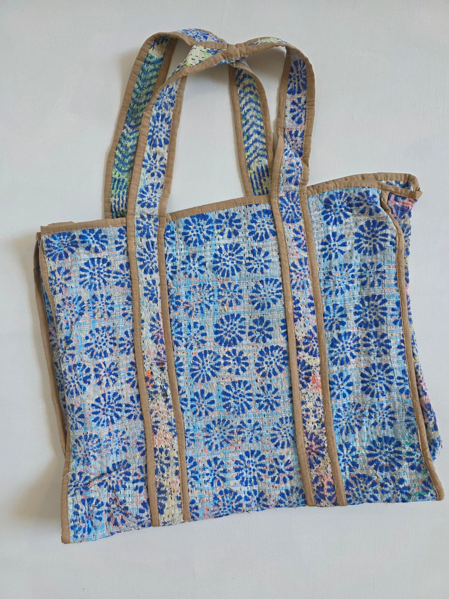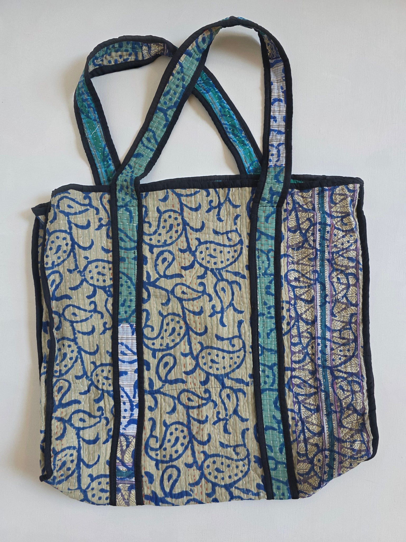 Your everyday reusable tote never looked so good! Each tote bag is made from upcycled kantha - featuring shoulder straps that wrap fully under the tote for better support. Perfect for carrying every day essentials, and using in lieu of single use bags at checkout.