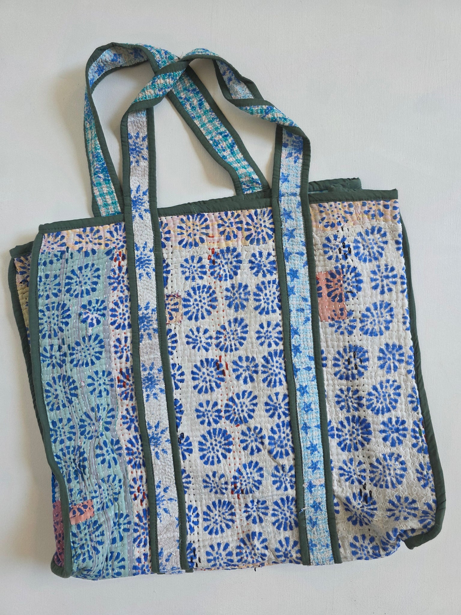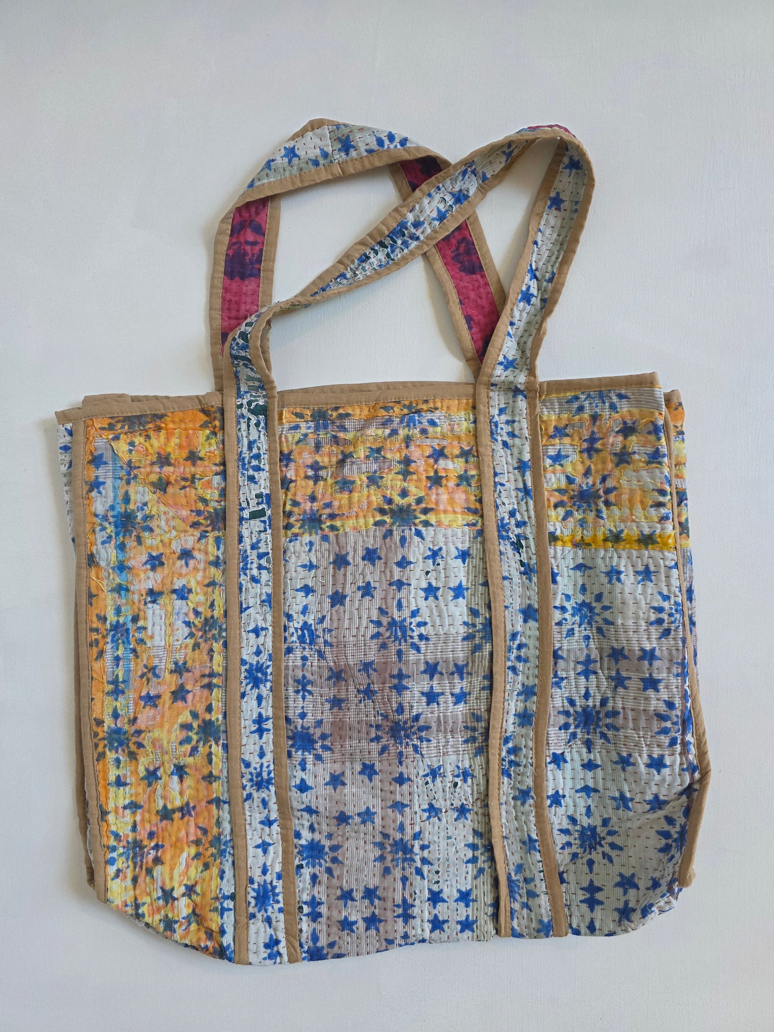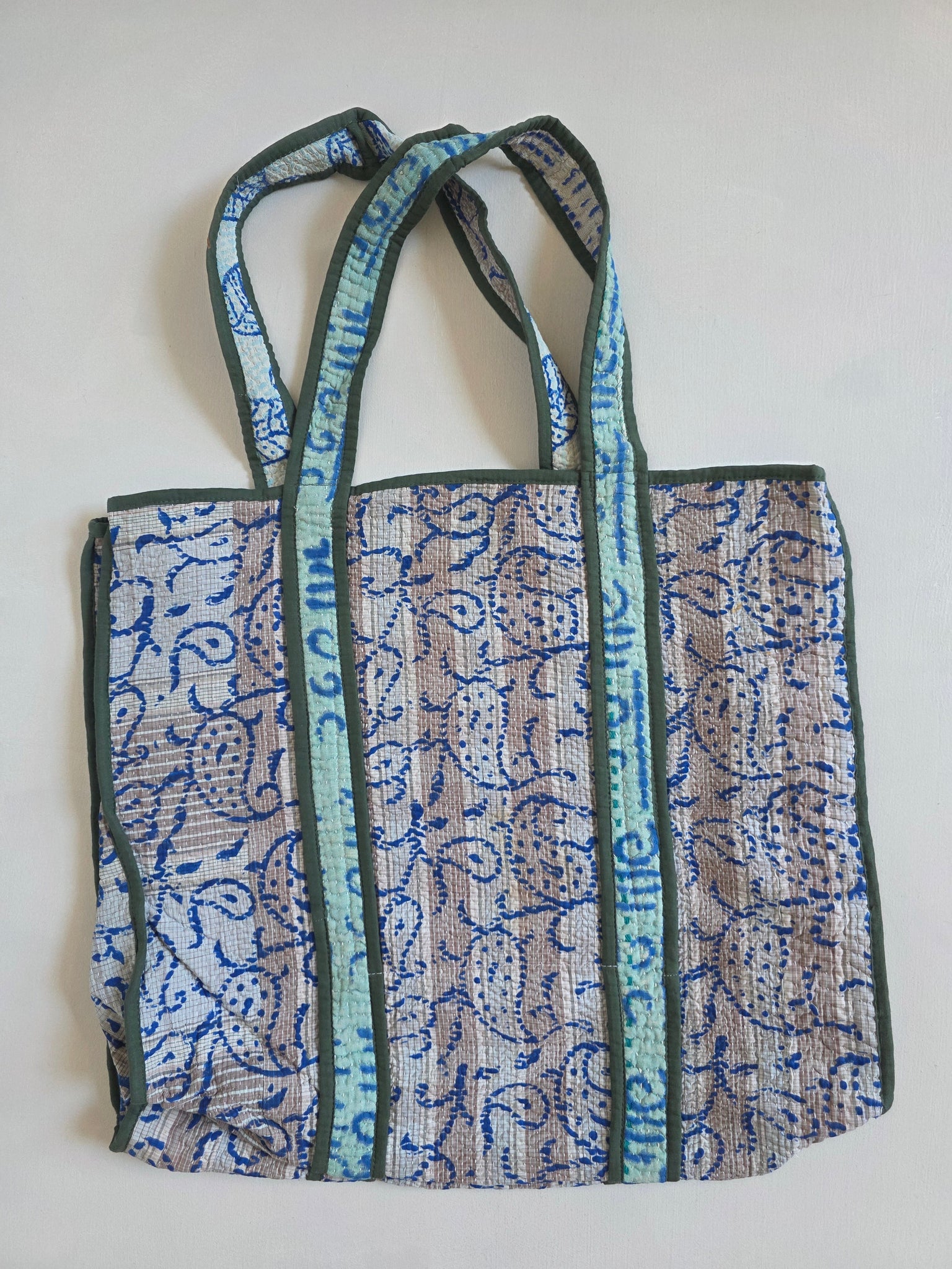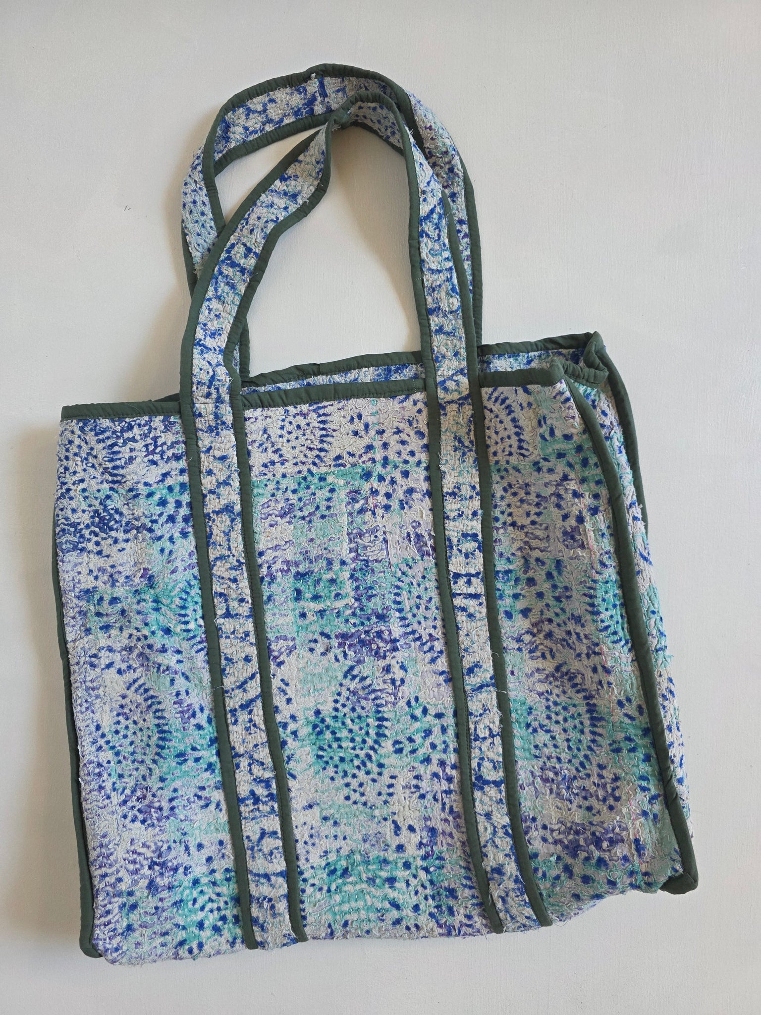 Your everyday reusable tote never looked so good! Each tote bag is made from upcycled kantha - featuring shoulder straps that wrap fully under the tote for better support. Perfect for carrying every day essentials, and using in lieu of single use bags at checkout.