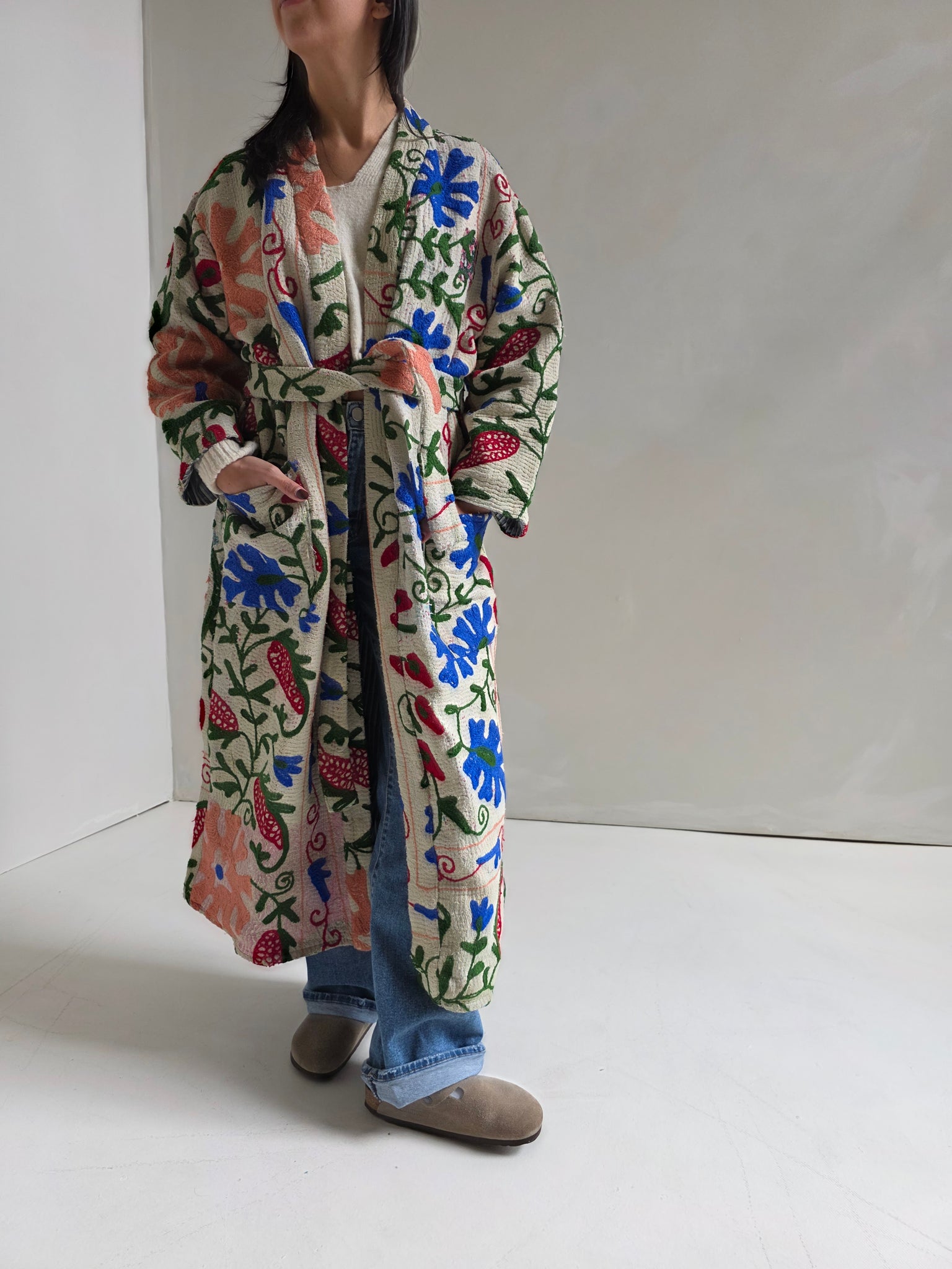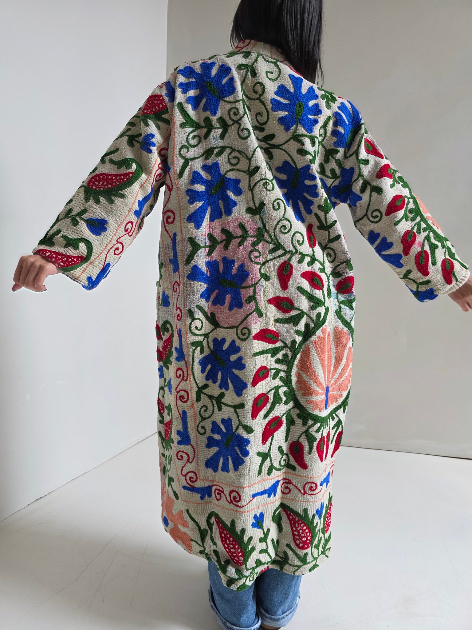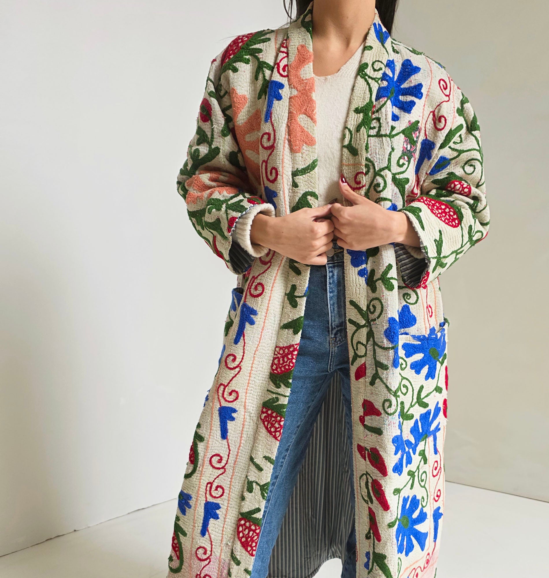 One of a kind, mid-weight jacket made from vintage cotton Kantha. Features a handsewn top-stitch detail for the prettiest texture and lasting durability.