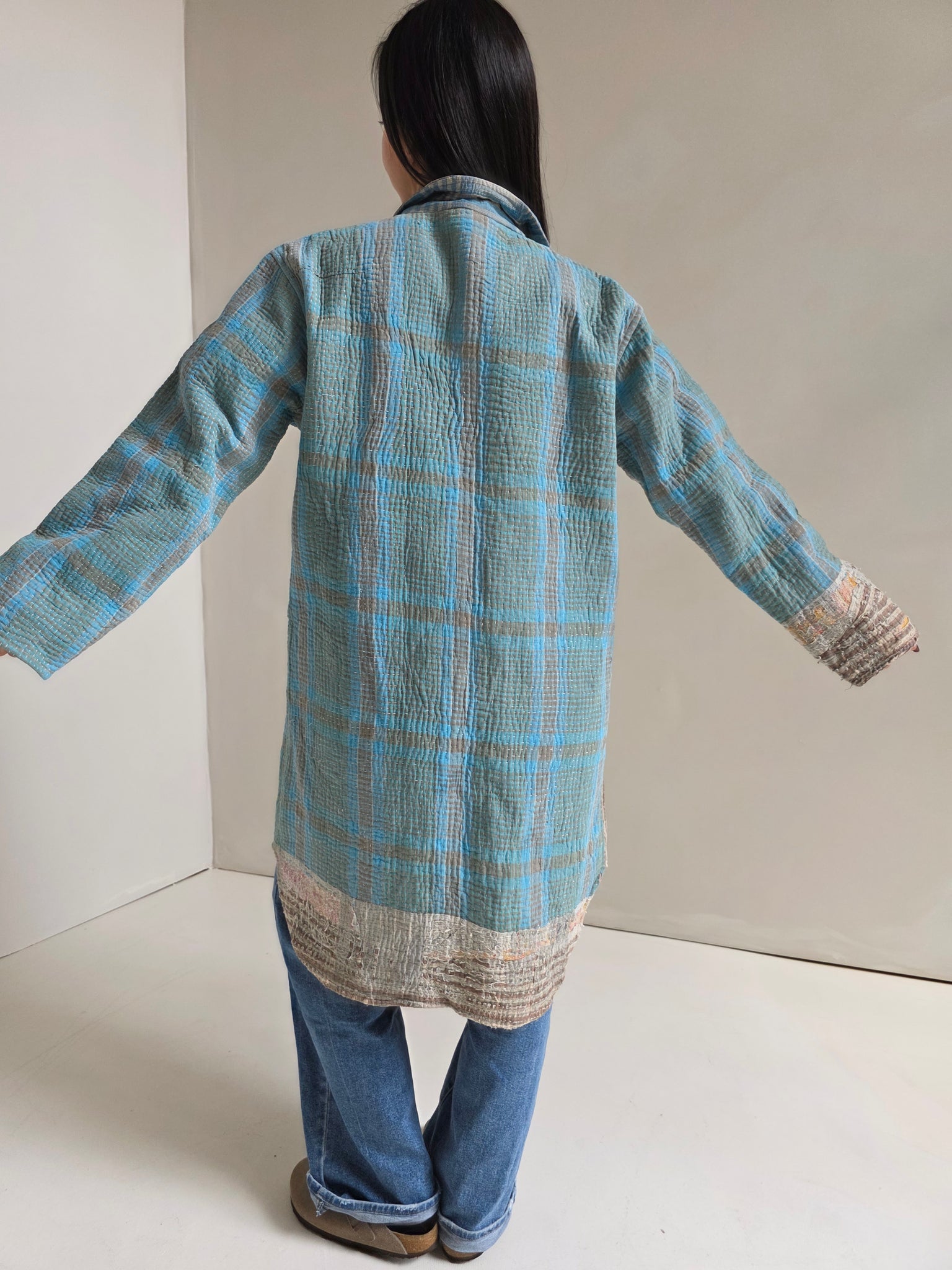 One of a kind, mid-weight jacket made from vintage cotton Kantha. Features a handsewn top-stitch detail for the prettiest texture and lasting durability.