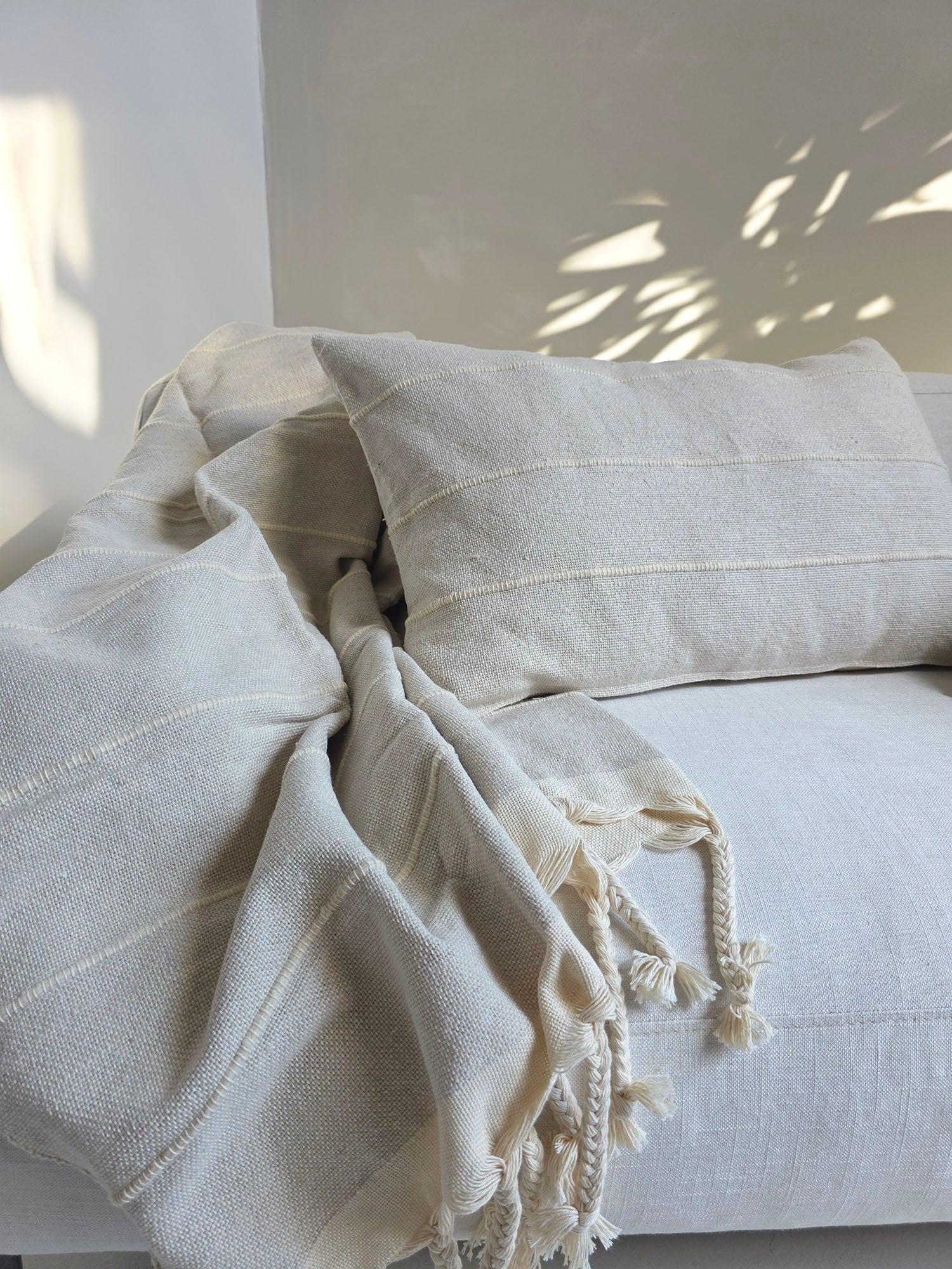 Woven on a foot-pedal powered loom by a master craftsman in Morocco.